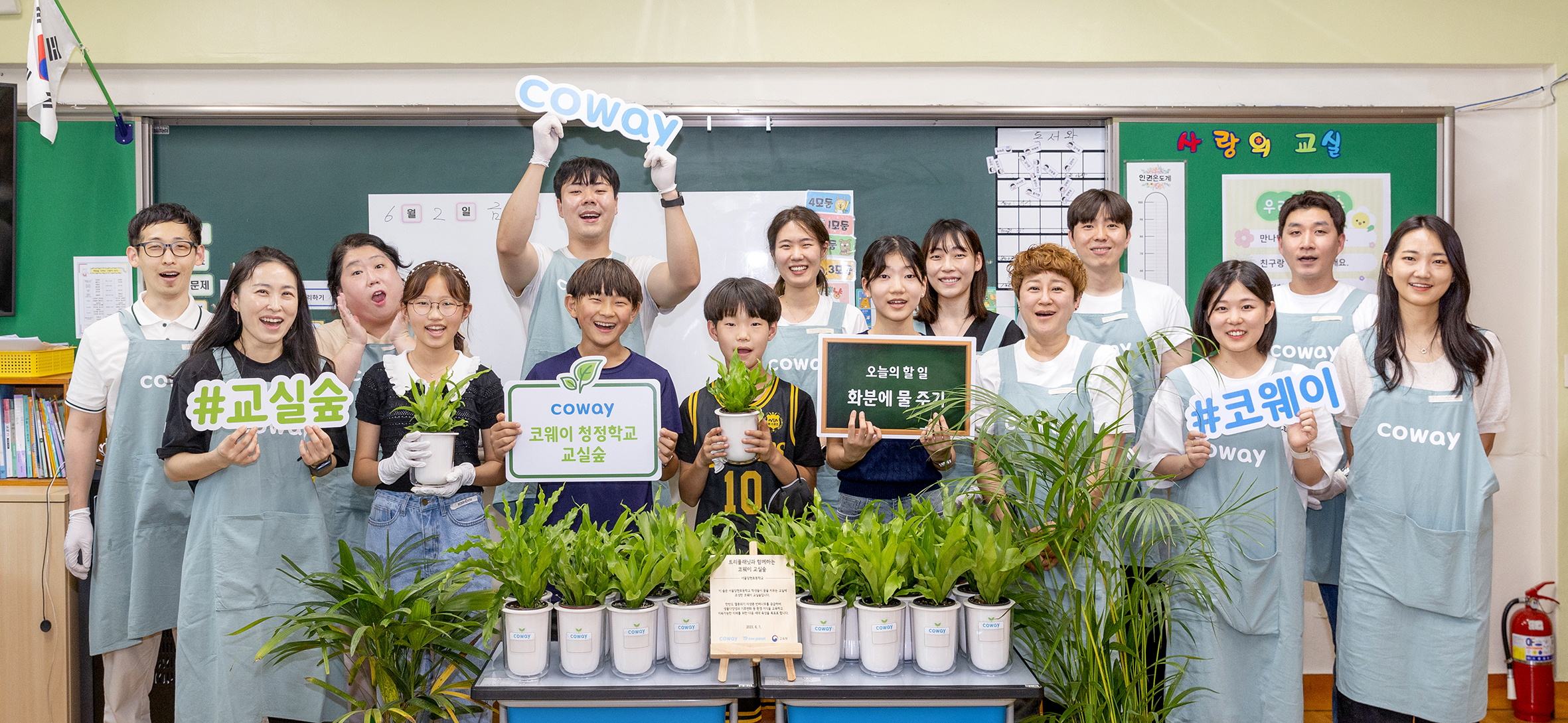 In schools, Coway has been spreading its message through the "Coway Classroom Forest Project," where it donates air-purifying plants to elementary schools. The plants create an environment where students can interact closely with nature and understand the importance of environmental protection and biodiversity.