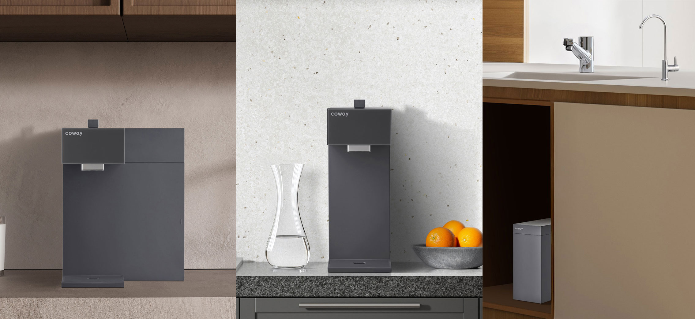 Coway’s Switch Water Purifier (from left to right: horizontal, vertical and under-sink types)