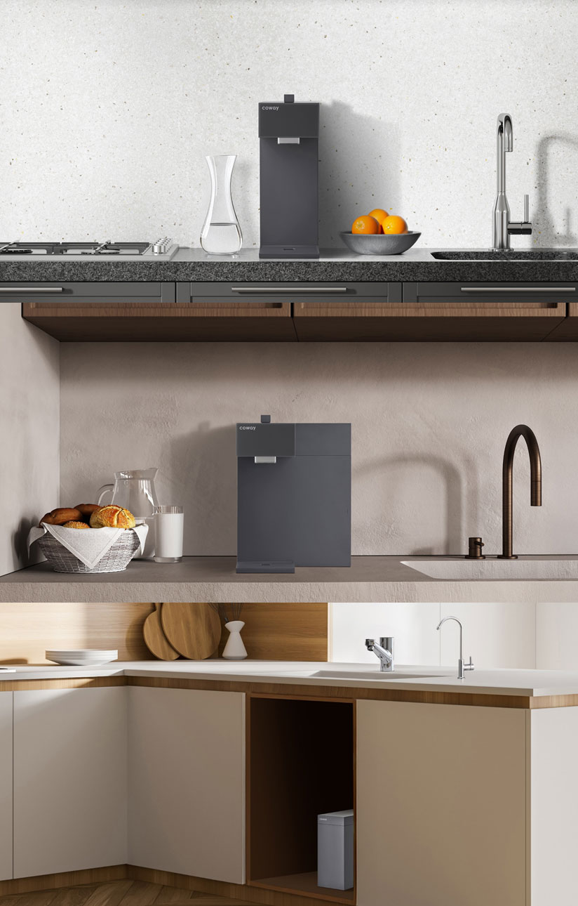 스위치 정수기는 바이러스, 박테리아, 중금속 등 물속 각종 유해 물질을 제거하는 나노트랩 필터 시스템을 탑재해 언제나 깨끗하고 신선한 물을 제공한다. 가로형 또는 세로형 카운터탑 사용 시 파우셋과 물받이를 쉽게 분리해 세척할 수 있어 위생적인 관리가 가능하다.