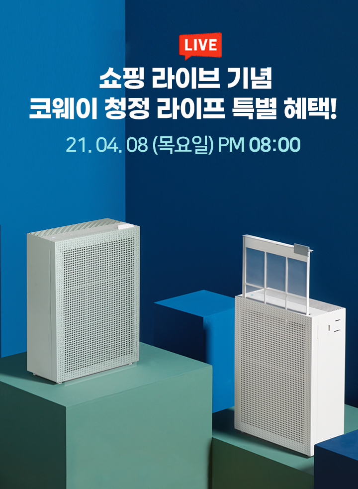 베스트 라이프 솔루션 기업 코웨이(대표 이해선·서장원)가 오는 8일 네이버 쇼핑 라이브 스토어 오픈을 기념해 ‘코웨이 청정 라이프’ 특별전을 진행한다고 밝혔다.