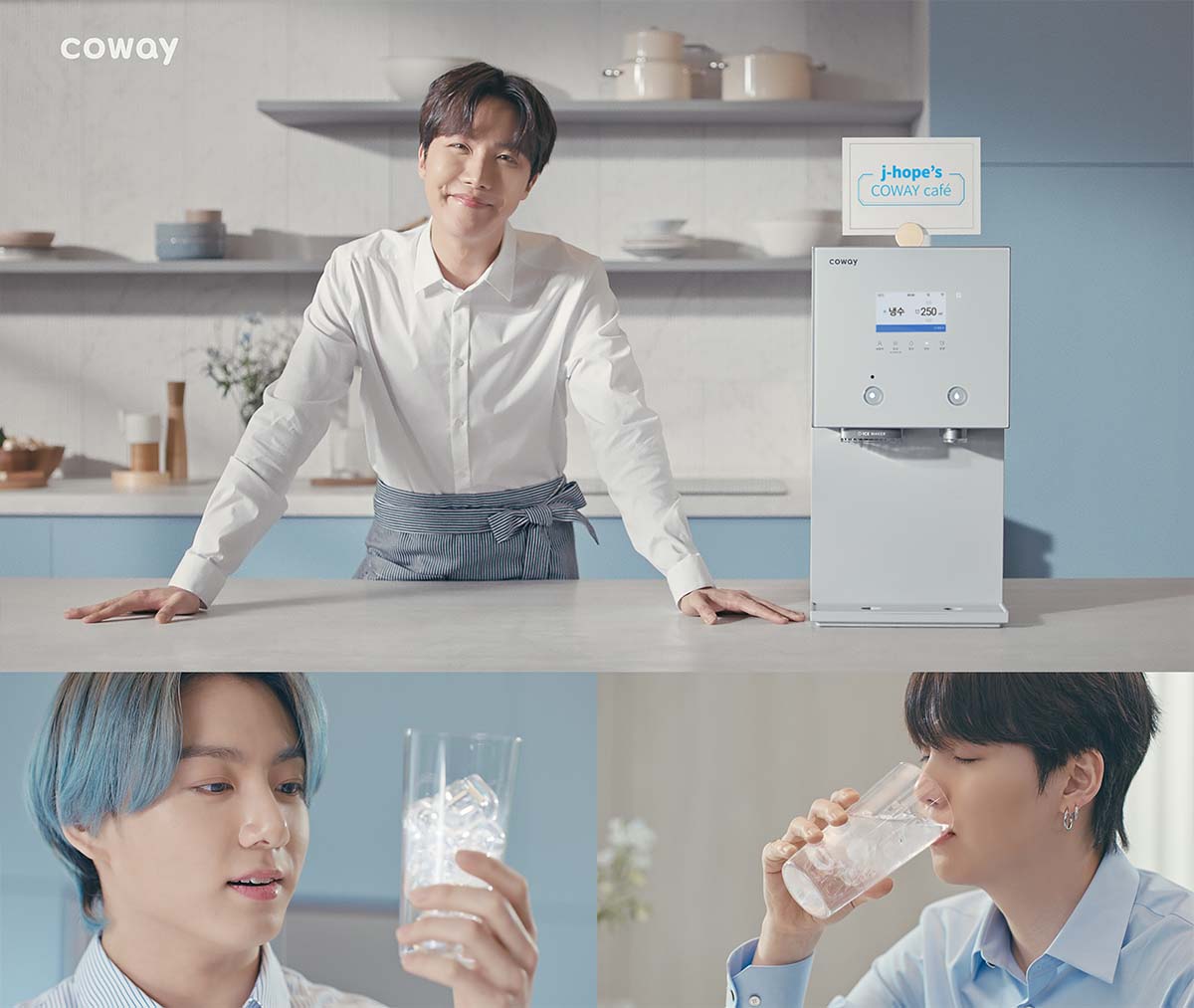 이번 광고는 홈카페 바리스타로 변신한 제이홉에게 손님인 슈가와 정국이 능청스럽게 주문하는 모습을 통해 코웨이 AIS 정수기의 특장점인 ‘미국수질협회(WQA) 인증받은 깨끗한 물’, ‘크리스탈 제빙TM으로 투명한 얼음’, ‘3단계 조절 가능한 탄산’을 자연스럽게 전달한다.