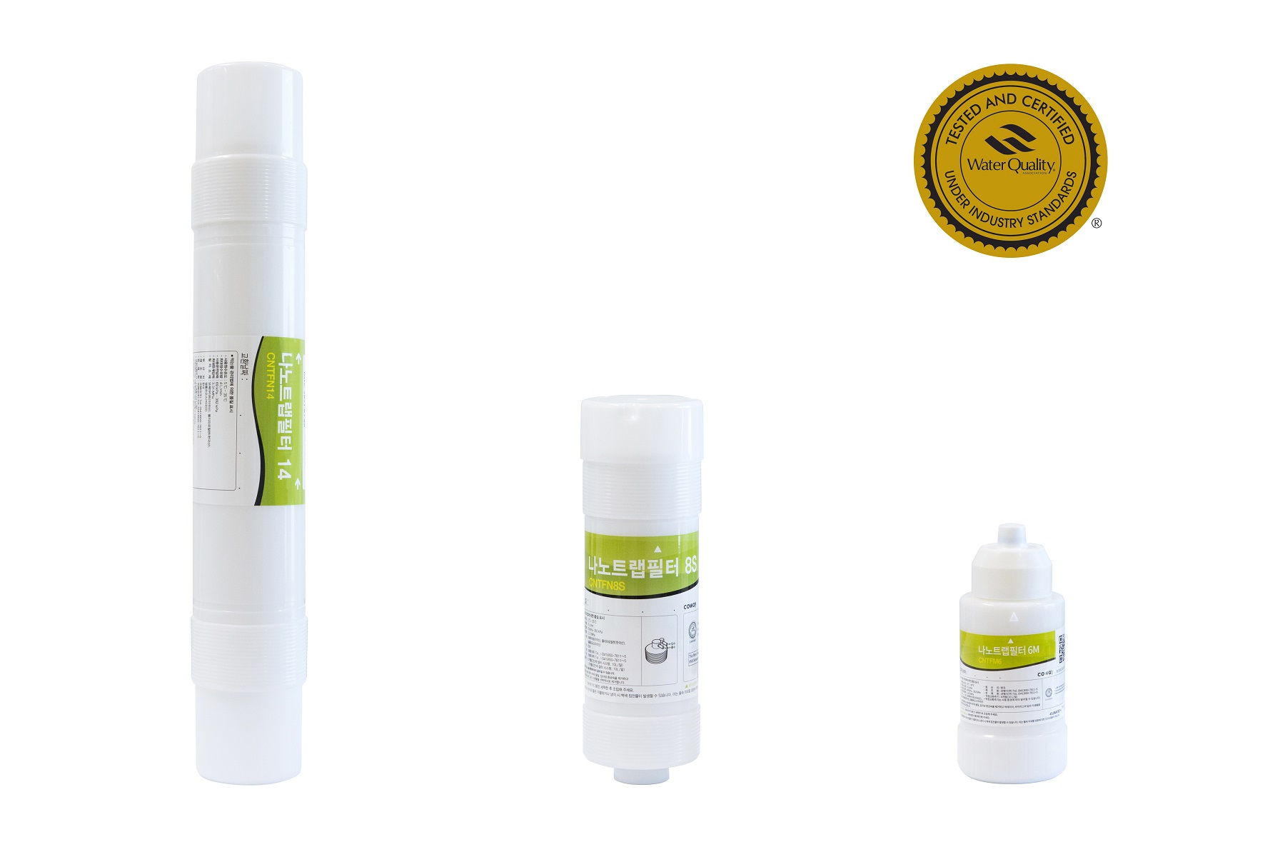 코웨이 나노트랩 필터 및 직수형 정수기는 미국수질협회(WQA)로부터 미세플라스틱 외에도 잔류 의약품 및 환경호르몬, 유해 중금속 등 총 94 종의 유해 물질에 대한 정수 성능을 인증받고 있다. 이는 국내 직수 타입 정수기 중 최다 인증 항목이다.