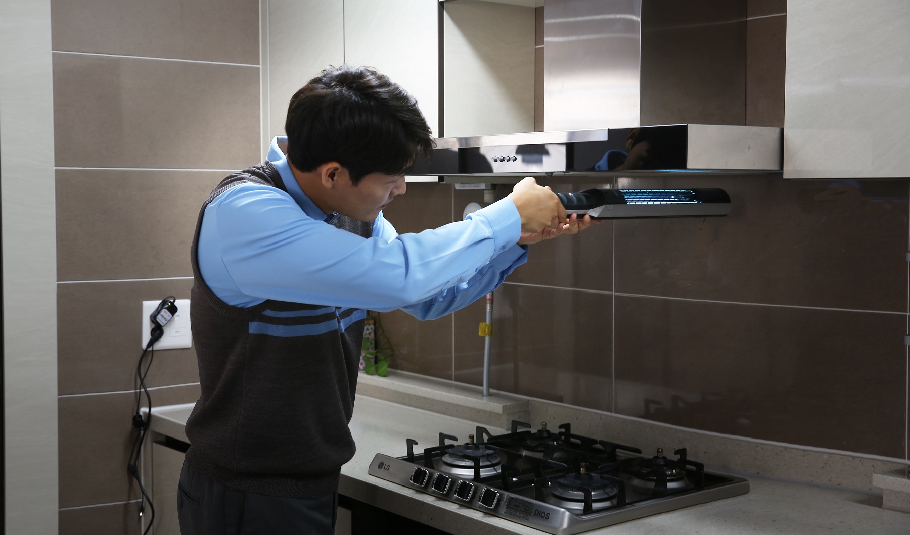 주방후드 케어서비스는 후드 내부를 분해해 필터뿐 아니라 외부, 내부, 모터와 팬 등 손에 닿지 않는 곳까지 꼼꼼하게 관리하는 것이 특징이다. 뿐만 아니라, 세척에 사용되는 세정제는 친환경 인증 및 생활화학제품 안전기준확인 인증을 받아 안전성도 확보했다.