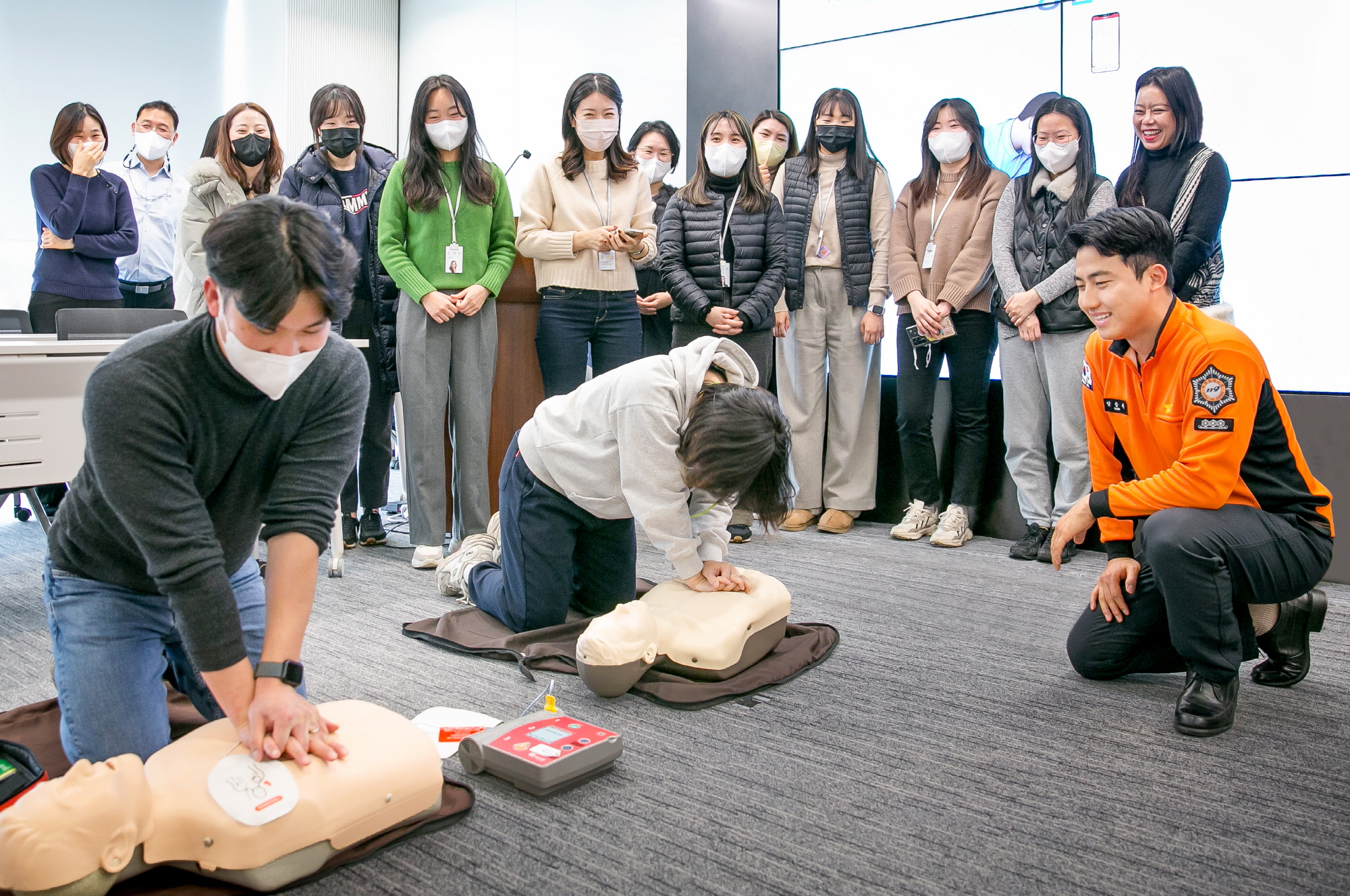 이번 심폐소생술 교육은 서울 구로구에 위치한 본사 G타워에서 구로소방서의 지도 하에 이틀간 진행됐다. 약 100명의 임직원이 자발적으로 참여해 과정을 이수했다. 교육에 참여한 임직원들은 심정지 환자 발견 시 응급처치 절차에 대해 배우고, 실습을 통해 심폐소생술 방법과 자동심장충격기(AED) 사용법을 익혔다.