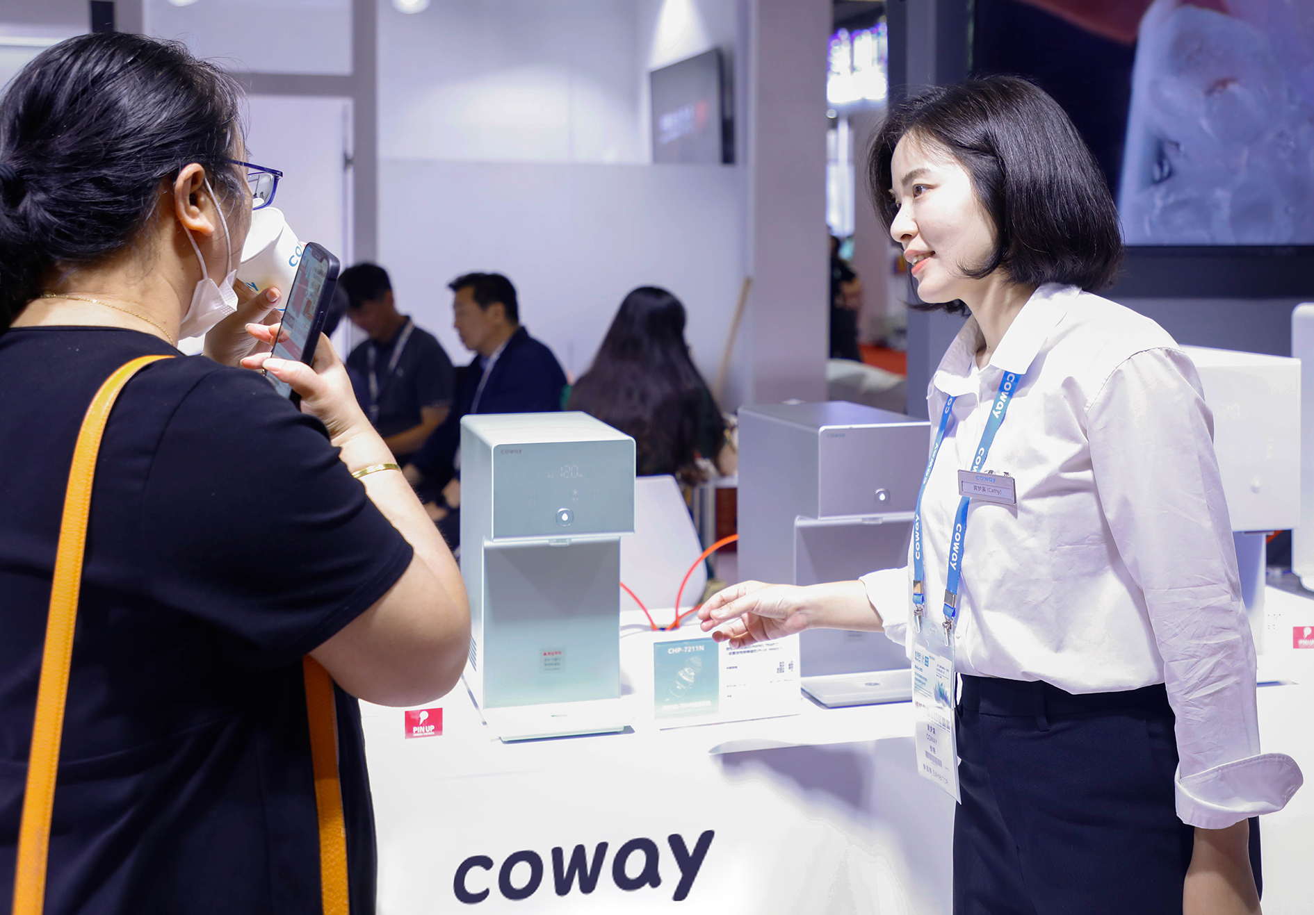 이번 전시에서 코웨이는 한국 대표 인기 제품인 ‘아이콘 정수기2’, ‘아이콘 얼음정수기’를 중국 시장에 처음으로 소개했다. 아이콘 정수기2는 정수기 제품에서 요구하는 모든 혁신을 담은 코웨이 기술의 결정체로, 초소형 사이즈는 물론 높은 위생성, 똑똑한 사용성, 초고온수 구현 등을 갖춰 정수기 제품 기준을 한 단계 끌어올렸다고 평가 받는다. 아이콘 얼음정수기는 콤팩트한 사이즈, 빠르고 풍부한 제빙 성능, 강화된 위생관리가 특징이다.