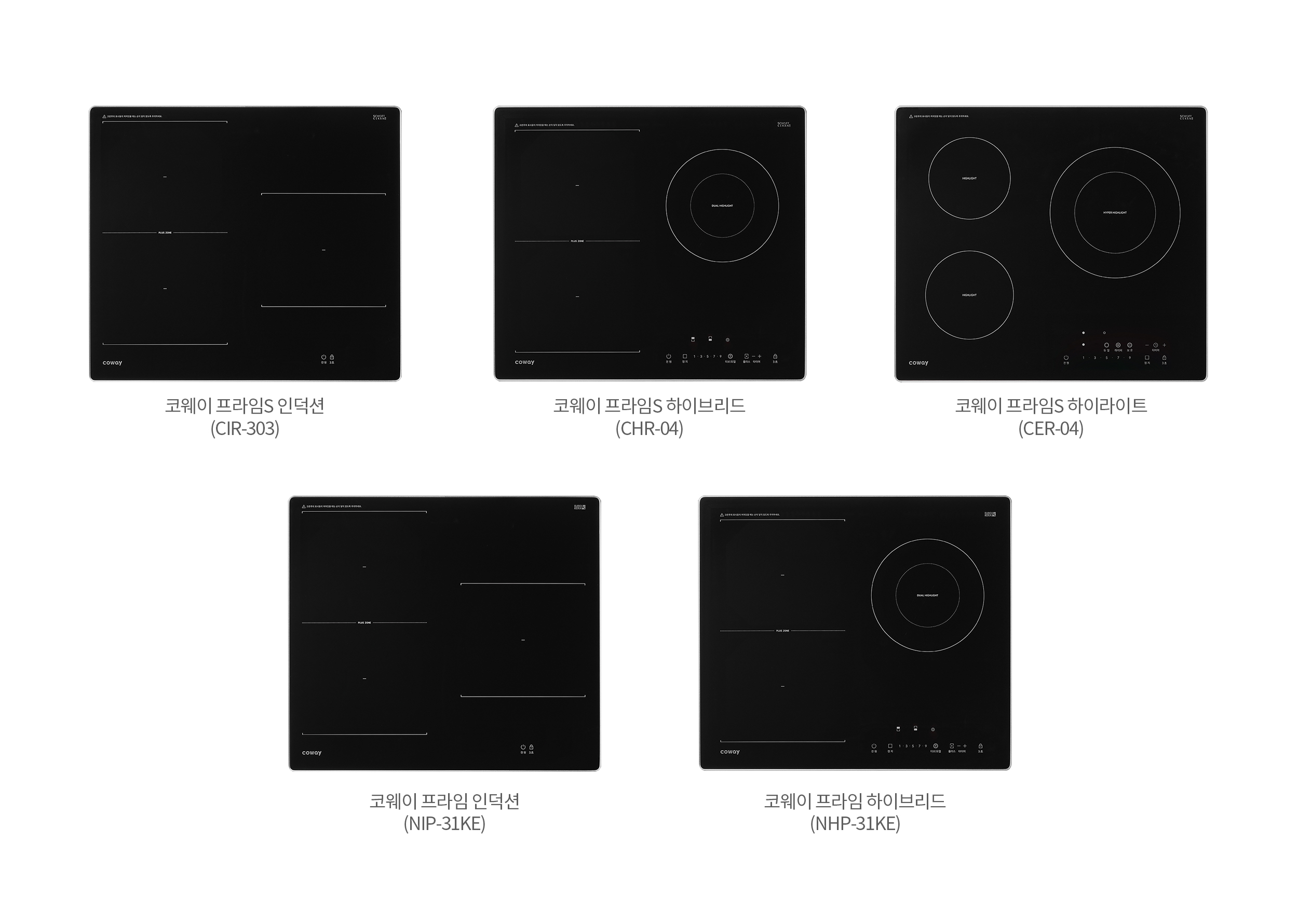 코웨이 2023년형 전기레인지는 고객 선호에 따라 화구 종류를 선택할 수 있다. 프라임S 전기레인지는 △강력한 화력을 갖춘 인덕션(CIR-303) △인덕션 2구와 하이라이트 1구를 결합한 하이브리드(CHR-04) △용기의 제약 없는 하이라이트(CER-04) 등 3가지 라인업으로 구성됐다. 프라임 전기레인지는 △인덕션(NIP-31KE) △하이브리드(NHP-31KE) 두 가지로 선보였다.
