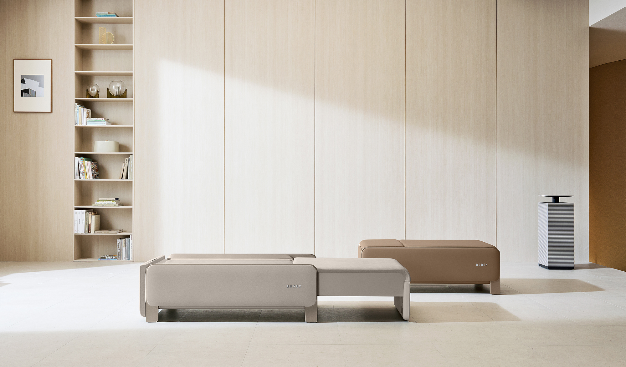 코웨이 비렉스 안마베드는 편안하게 누운 상태에서 깊고 강력한 마사지를 제공하는 안마기기다. 가구형 디자인을 적용해 평소에는 쇼파 스툴처럼 활용하다가 안마 시 간편하게 당겨 펼칠 수 있다. 주변 가구 및 공간 속에 자연스럽게 녹아드는 4가지 색상으로 구성되어 크림 화이트, 샴페인 베이지, 모카 브라운, 잉크 블랙 중 인테리어 및 취향에 따라 선택 가능하다.