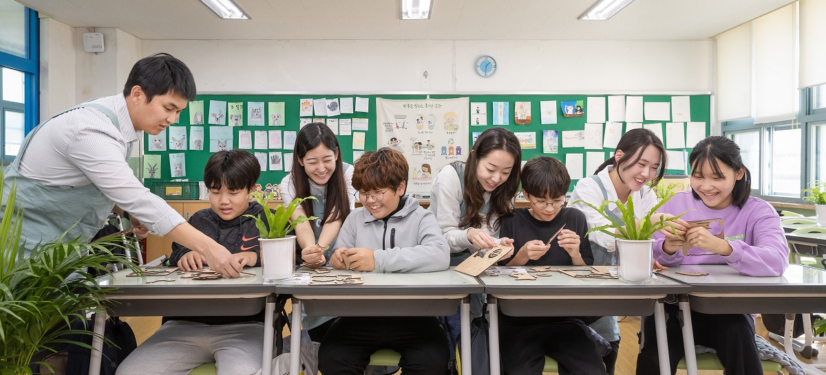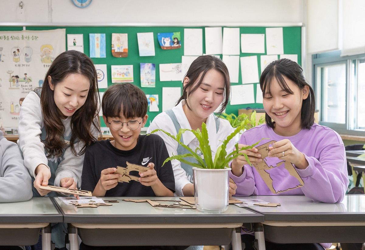 교실에는 공기정화식물 ‘아레카야자’와 ‘파초일엽’을 비롯한 식물 491그루와 함께 환경문제 인식개선을 위한 환경교육 키트가 전달됐다. 학생들은 일회용 마스크 자투리 원단과 재활용 투명 페트병으로 제작된 화분에 직접 식물을 옮겨 심으며 반려 나무로 관계를 맺고 관리 및 생육 활동을 담당하게 된다. 또한, 공기청정기의 원리와 깨끗한 공기의 중요성에 대해 알아보는 간이 공기청정기 만들기 교육도 병행된다.