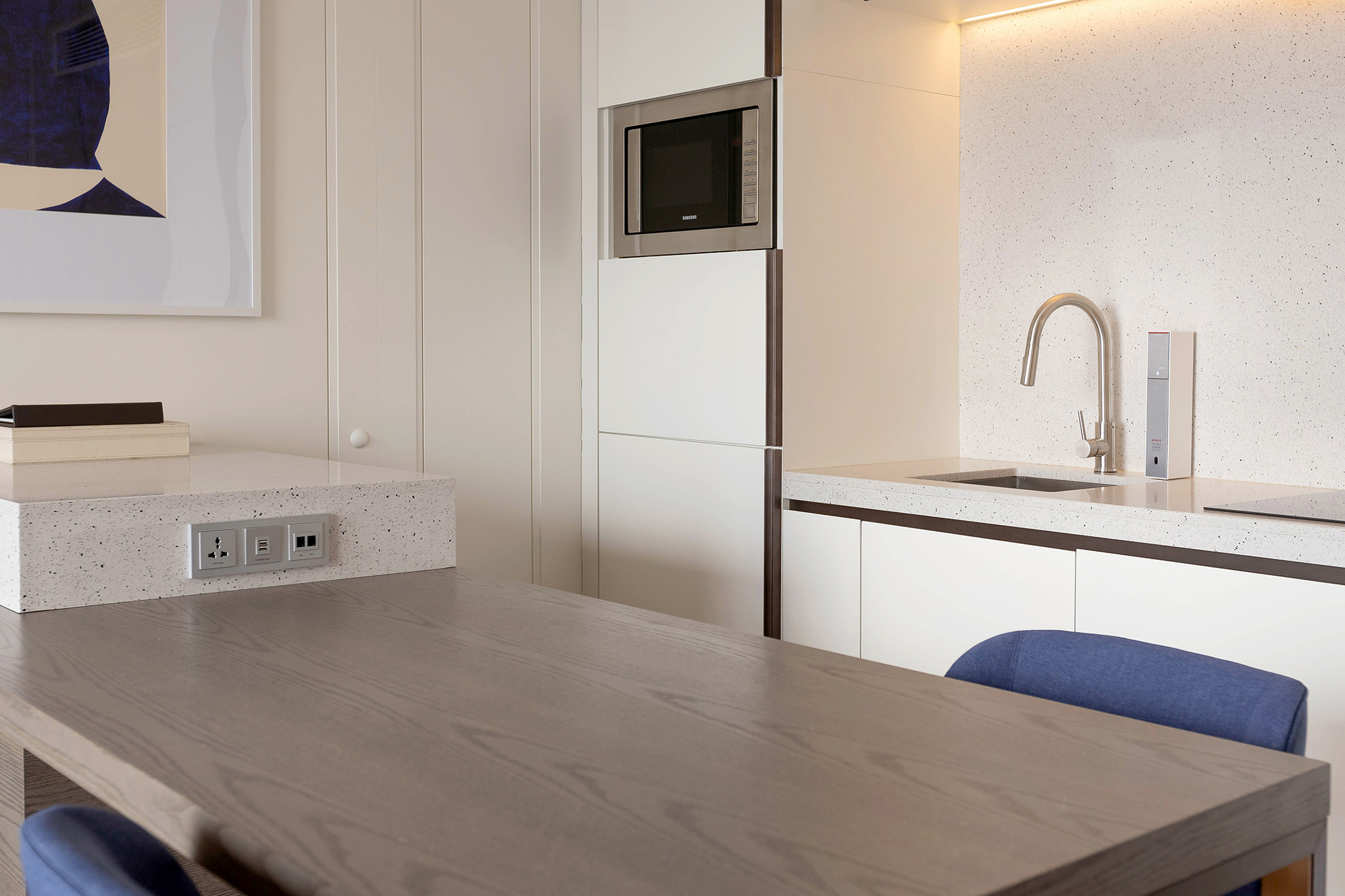 이번 호텔 객실에 설치된 노블 빌트인 정수기는 정수기 본체가 싱크대 하부에 설치되는 빌트인 타입 제품으로 고급스러운 미니멀한 디자인과 완벽한 위생 케어, 스마트한 제품 관리가 특징이다.