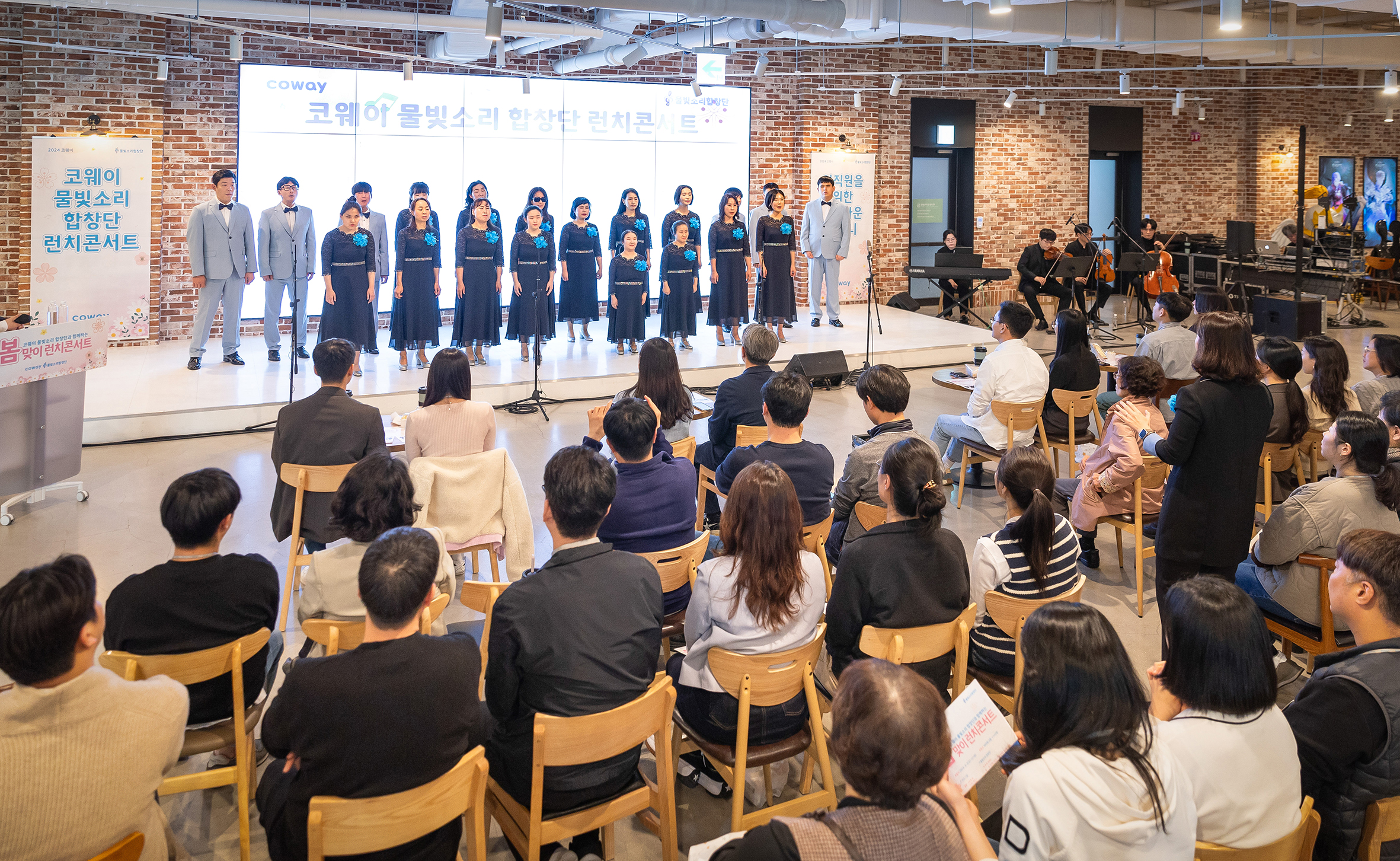 이번 콘서트는 작년에 이어 두 번째 맞이하는 임직원 대상 런치 콘서트로, 장애인의 날(4월20일)을 앞두고 더불어 살아가는 배려 문화 확산과 장애 인식 개선을 취지로 마련됐다. 이날 행사는 코웨이 물빛소리 합창단이 공연을 장식하고, 서장원 코웨이 대표이사를 비롯해 100여 명의 임직원들이 참여해 음악으로 소통하는 따뜻한 나눔의 시간을 가졌다.