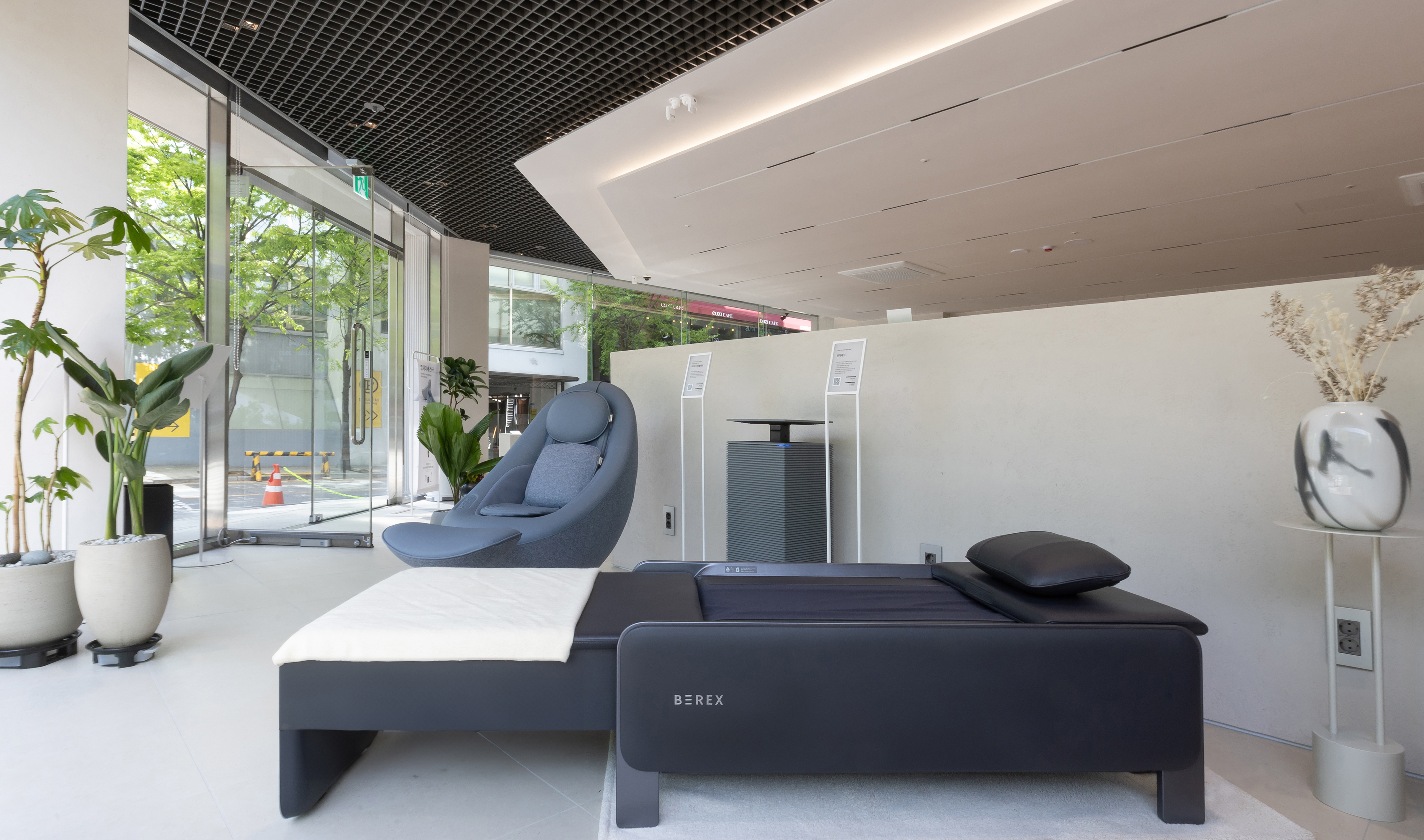 분당 직영점은 침실, 거실 등 실제 집처럼 연출된 ‘쇼룸 공간’, 비렉스 안마베드ㆍ척추베드, 비렉스 페블체어 등 비렉스 혁신 제품을 체험해볼 수 있는 ‘비렉스 체험 공간’, 다양한 코웨이 제품을 전시해놓은 ‘제품 전시 공간’, 제품 구매 및 상담을 진행할 수 있는 ‘상담 공간’으로 구성됐다. 고객들이 제품 체험과 구매를 편리하게 할 수 있도록 매장 내 전문 상담 인력도 배치했다.