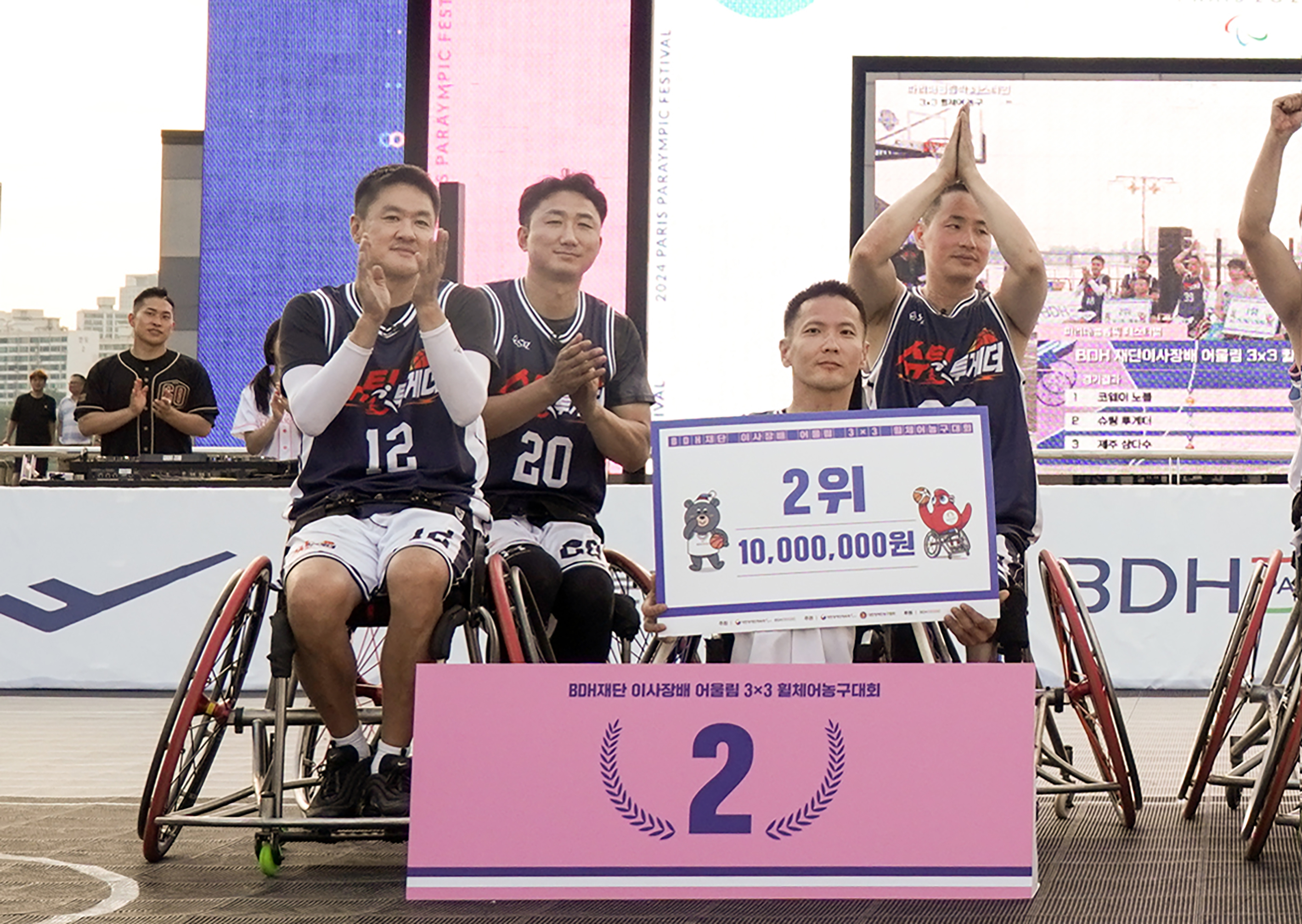이날 행사 중 장애인과 비장애인이 한 팀을 이뤄 경기하는 BDH 이사장배 ‘어울림 3X3휠체어농구대회’에 코웨이 블루휠스 소속 선수들이 참가했다. 총 12개 팀이 참가해 경쟁을 펼친 가운데 코웨이 블루휠스 소속 코웨이 노블 팀과 슈팅투게더 팀이 각각 우승과 준우승을 차지했다.