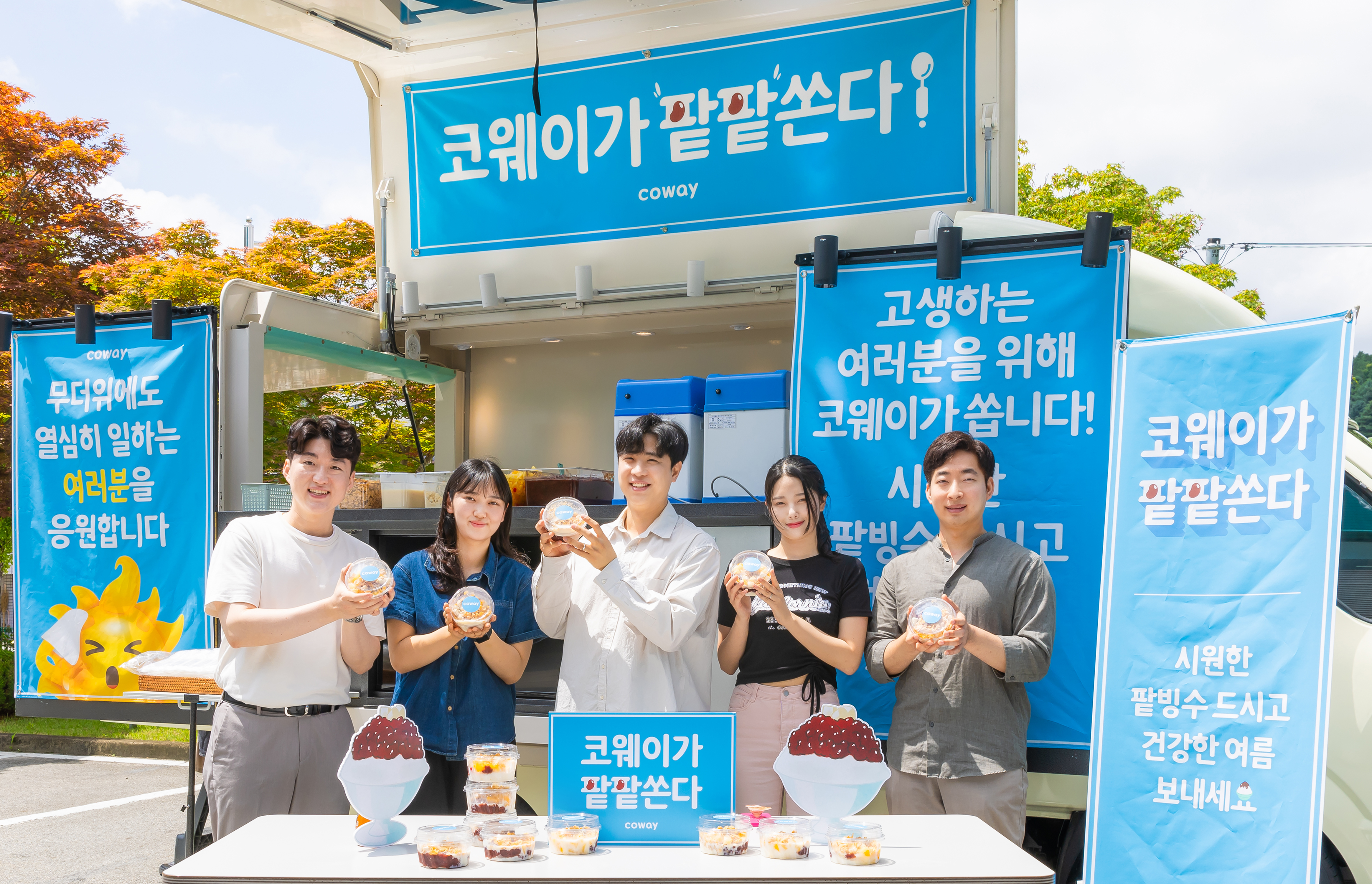 이 날 코웨이는 시원한 팥빙수를 가득실은 팥빙수차를 이벤트에 선정된 유구공장에 전달했다. 코웨이는 유구공장을 시작으로 인천공장, 대전총국에도 순차적으로 팥빙수차를 전달할 계획이다.