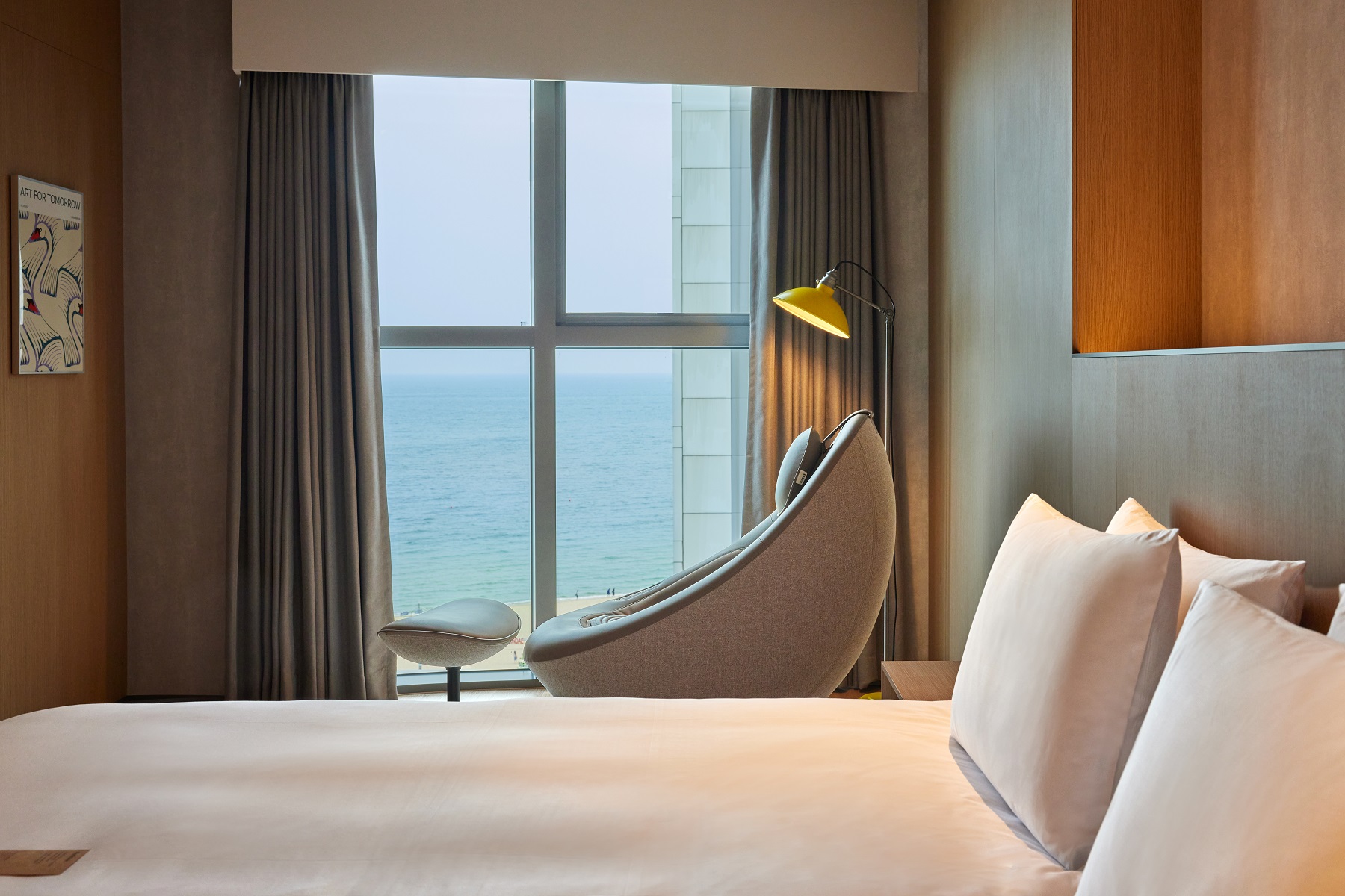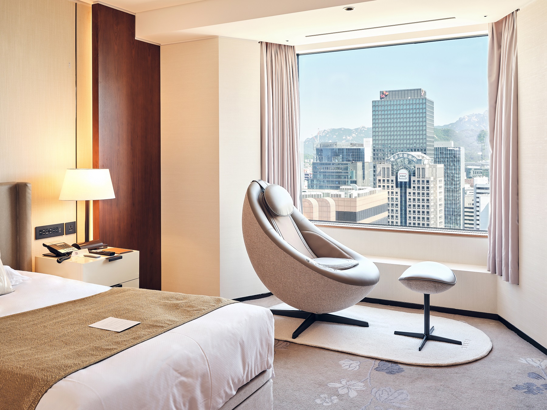 객실에 설치된 비렉스 안마의자 페블체어는 트렌디한 디자인의 가구형 안마의자로, 프리미엄 안마 시스템을 적용해 심미성과 기능성을 모두 충족한 제품이다. 코웨이만의 특허 기술인 ‘핫스톤 테라피 툴’과 ‘3D 안마 모듈’을 탑재해 작아진 크기에도 강력한 집중 온열 마사지와 입체적인 안마 효과를 누릴 수 있어 높은 소비자 만족도를 얻고 있다.