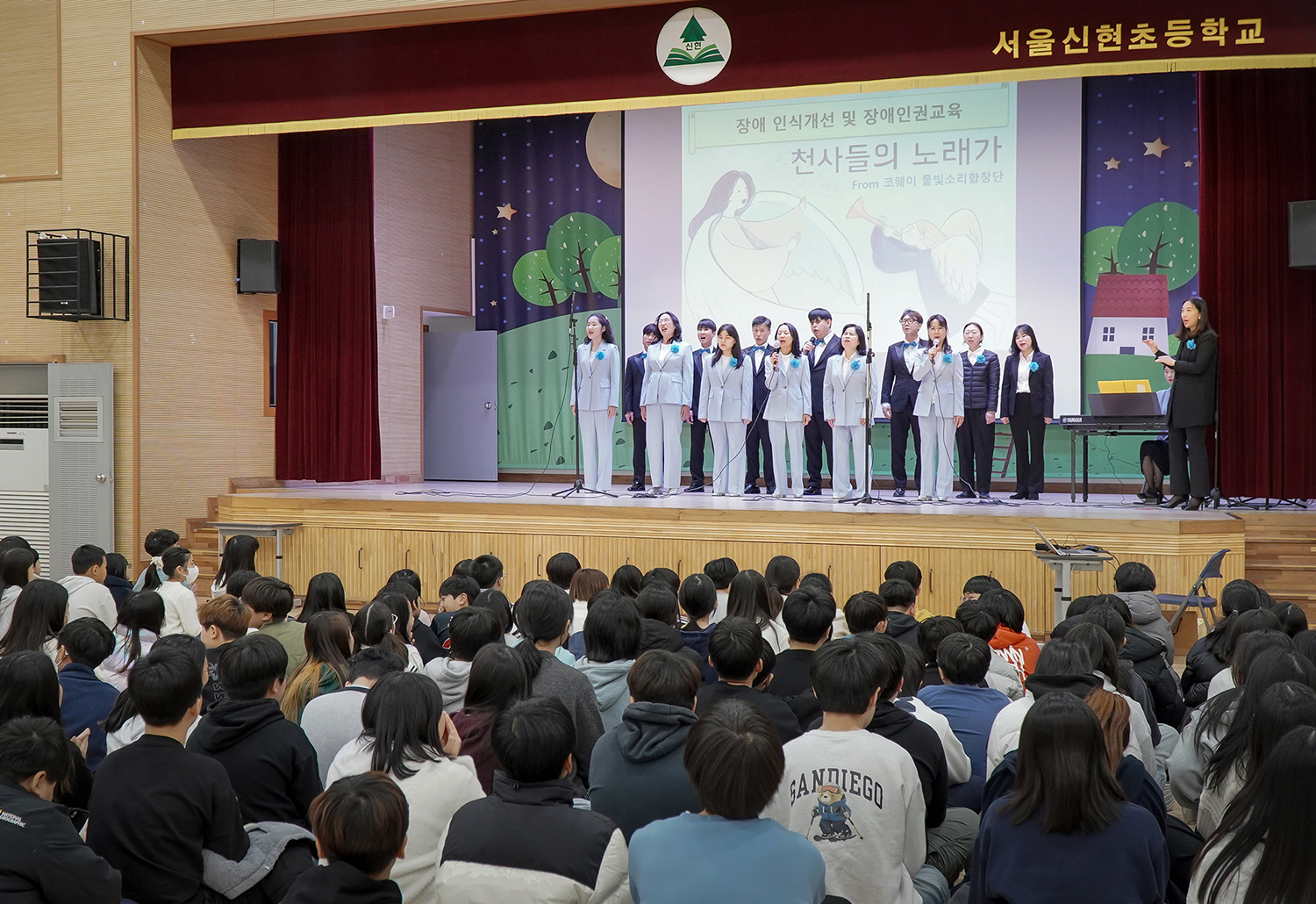 코웨이 물빛소리 합창단은 지난 3일 서울 중랑구 신현초등학교를 찾아 재학생 및 교직원 400여 명을 대상으로 캠페인 활동을 진행했다. 이날 행사에서는 송문경 합창단원이 장애인과 비장애인이 동등한 사회의 구성원으로 어우러지기 위한 인식 전환을 주제로 강연을 펼쳤다. 물빛소리 합창단은 특강 전후로 동요와 캐롤 모음곡으로 구성된 공연을 선보여 학생들로부터 큰 호응을 얻었다.