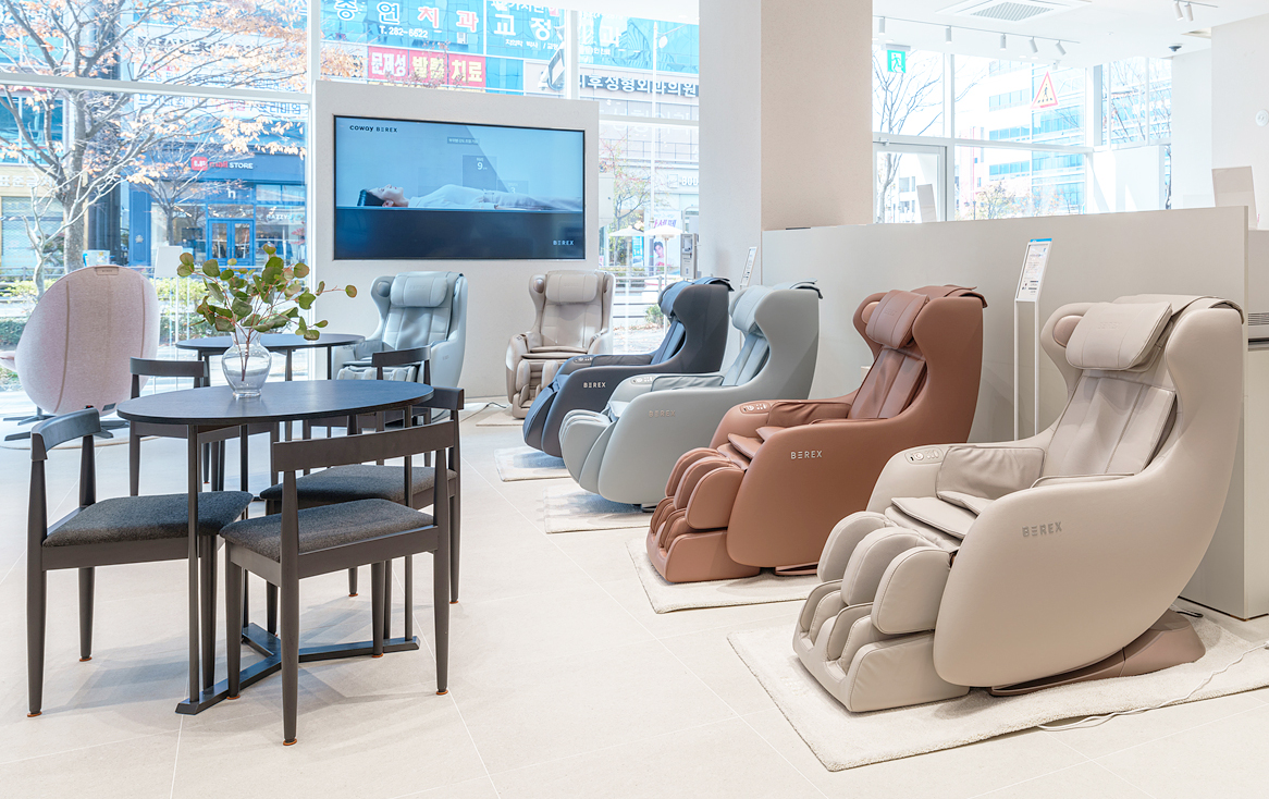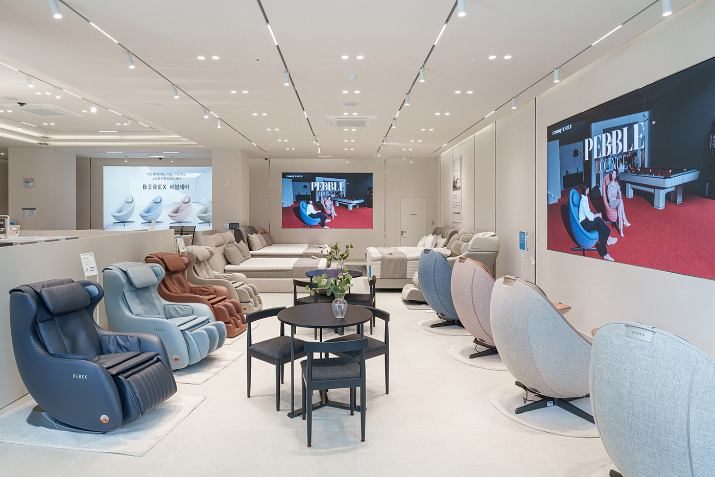 신규 매장은 전주 시내 주요 상권인 효자동 중심부에 위치해 유동인구가 풍부하고 우수한 접근성 및 교통 여건을 갖췄다. 신제품 ‘비렉스(BEREX) 스마트 매트리스 S8+’를 비롯해 아이콘 얼음정수기, 비렉스 페블체어 등 베스트셀러를 직접 체험해보고 구매할 수 있다. 특히 카테고리 구역별로 제품 소개 영상을 담은 디스플레이를 설치해 직관성을 높이고 시각적 경험을 강화했다.