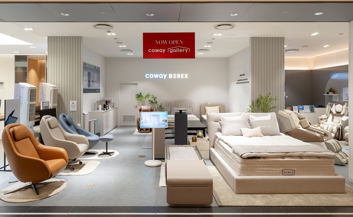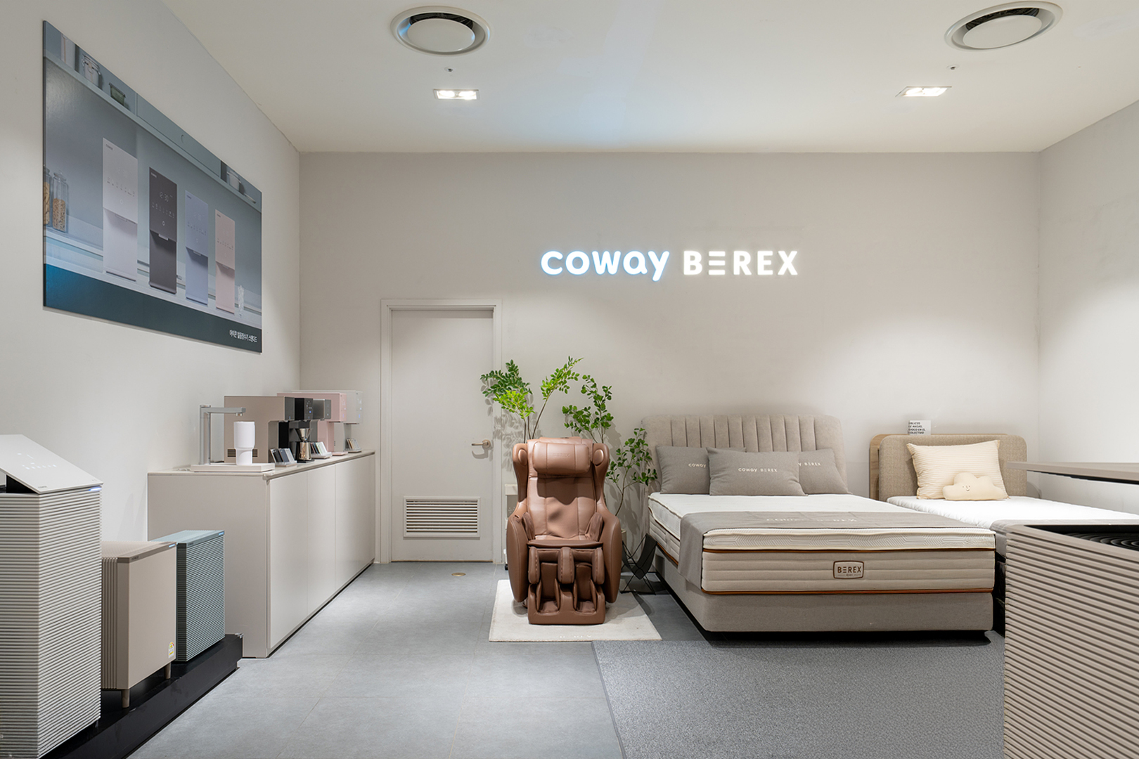 매장에 방문한 고객은 아이콘 얼음정수기, 공기청정기 등 대표 환경가전은 물론, 슬립 및 힐링케어 브랜드 ‘비렉스(BEREX)’의 대표 안마의자 페블체어, 트리플체어 등 코웨이의 혁신 제품을 직접 경험할 수 있다.