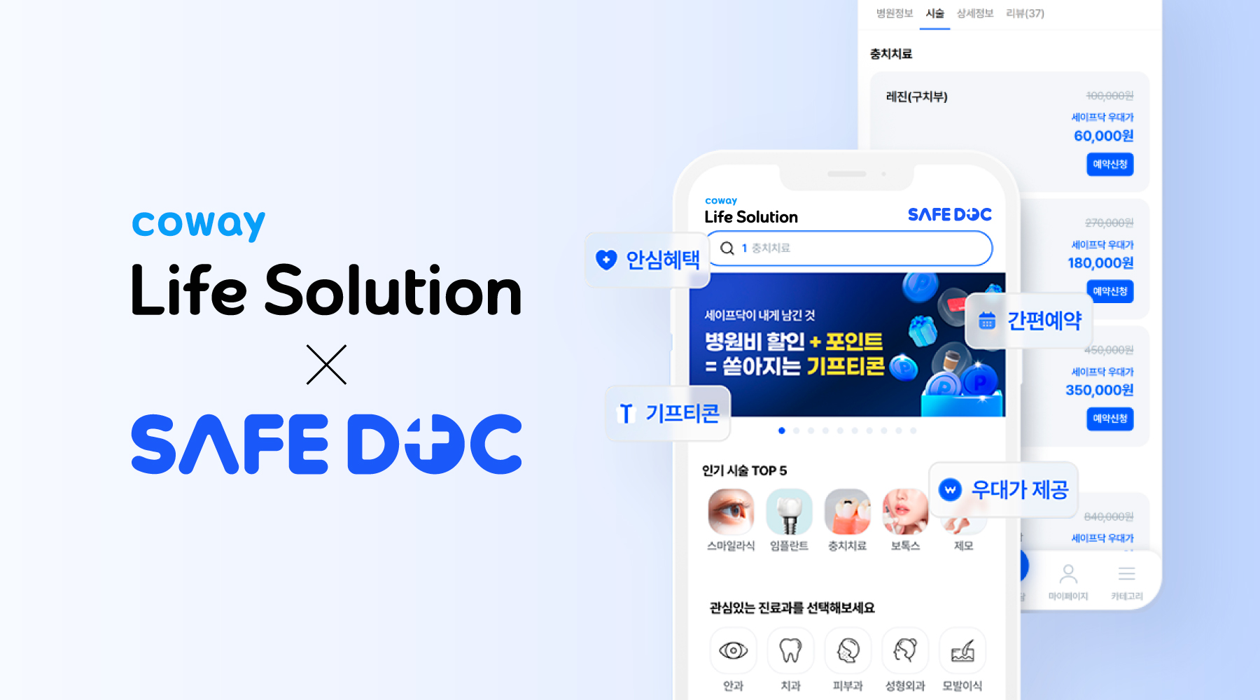 세이프닥과 제휴를 통해 코라솔 가입 고객이라면 누구나 전국 500여 개 병·의원, 15개 진료과에서 비급여 의료비 할인 혜택을 누릴 수 있게 됐다. 이와 함께 병원별 시술 정보 확인, 맞춤 병원 추천, 빠른 예약 등 다양한 의료 편의 서비스도 제공된다.